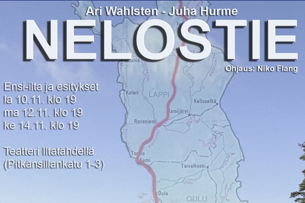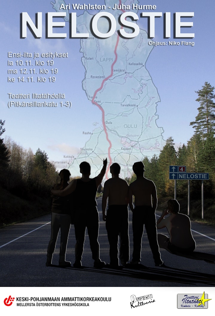 Highway No 4 (or in Finnish "Nelostie") was my directorial debut. I directed the play during my third year in Central Ostrobothnia University of Applied Sciences. I chose the play for its comedic value - I thought the play was absolutely fantastically written by Ari Wahlsten & Juha Hurme. It was a mixture of dramatic elements intertwined into Finnish history from 30 years ago to present times and on top of that featured fantastically absurd and witty humour. The play was performed at Teatteri Iltatähti in Kokkola, Finland in 2007.